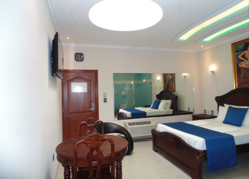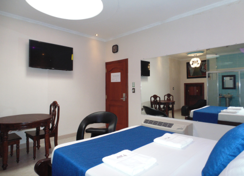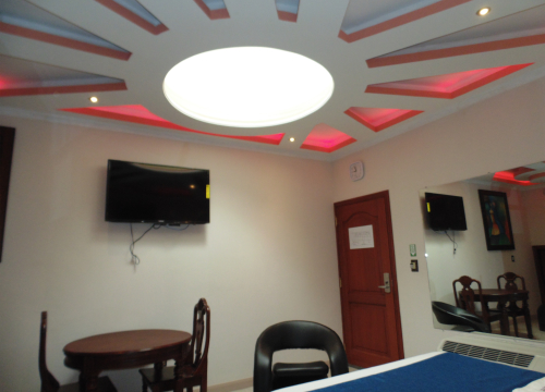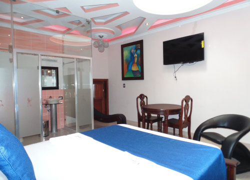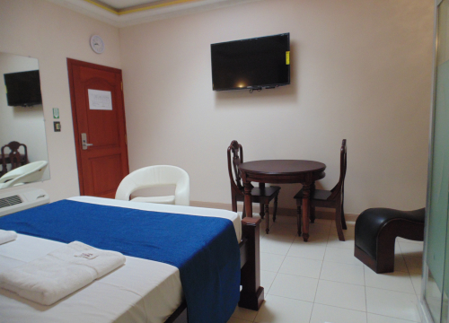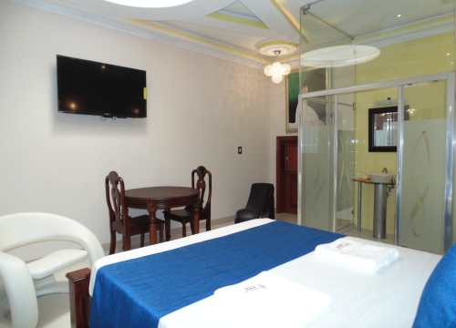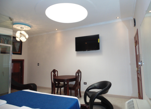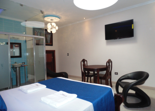 sillón Kamasutra, dos mesas de noche, cable, TV 42” full HD,